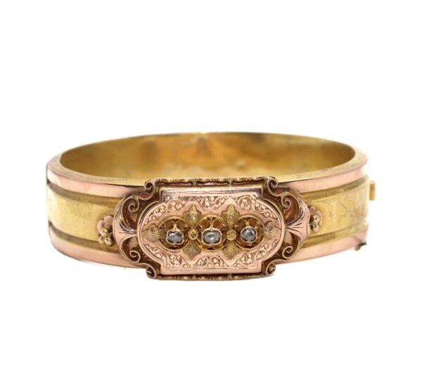 Zlatý, secesní náramek s diamanty