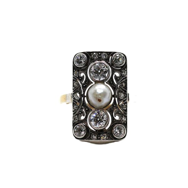 Zlatý Art Deco prsten s perlou a brilianty