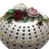 Porcelánová dóza s růžemi, prolamovaná. Značeno Schierholz, kolem r. 1925. Průměr dózy 13,5cm.