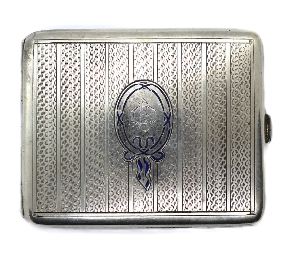 Secesní stříbrná tabatěrka, smalt