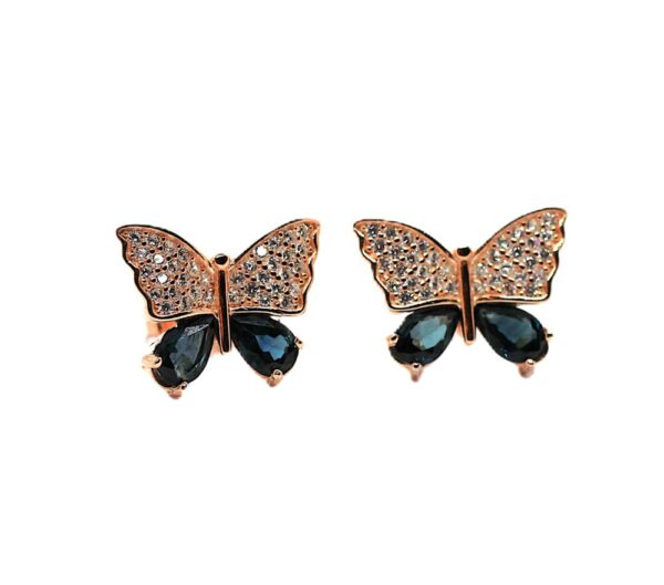 Stříbrné náušnice motýlci, pozlacené, zirkony, topazy