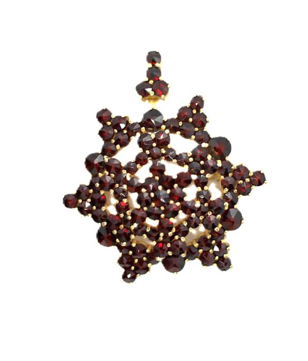 Stříbrná brož či přívěs s českými granáty, pozlacená