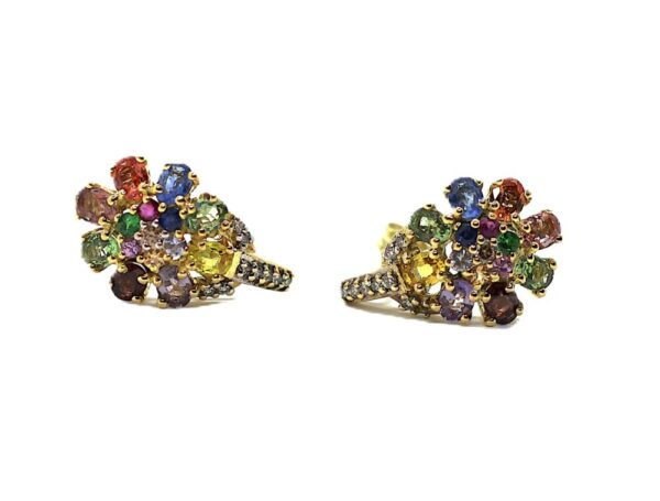 Stříbrné náušnice s granáty a kamejí, pozlacené