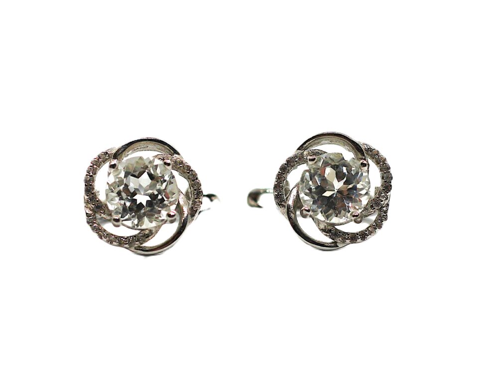 Stříbrné náušnice s bílým topazem a zirkony