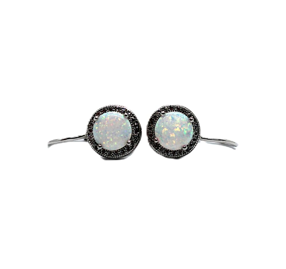Stříbrné náušnice s opály a zirkony, stříbro ryzosti 925/1000, váha celkem 2,61g. Velikost ozdobné části 1cm, vč. ouška 1,8cm.