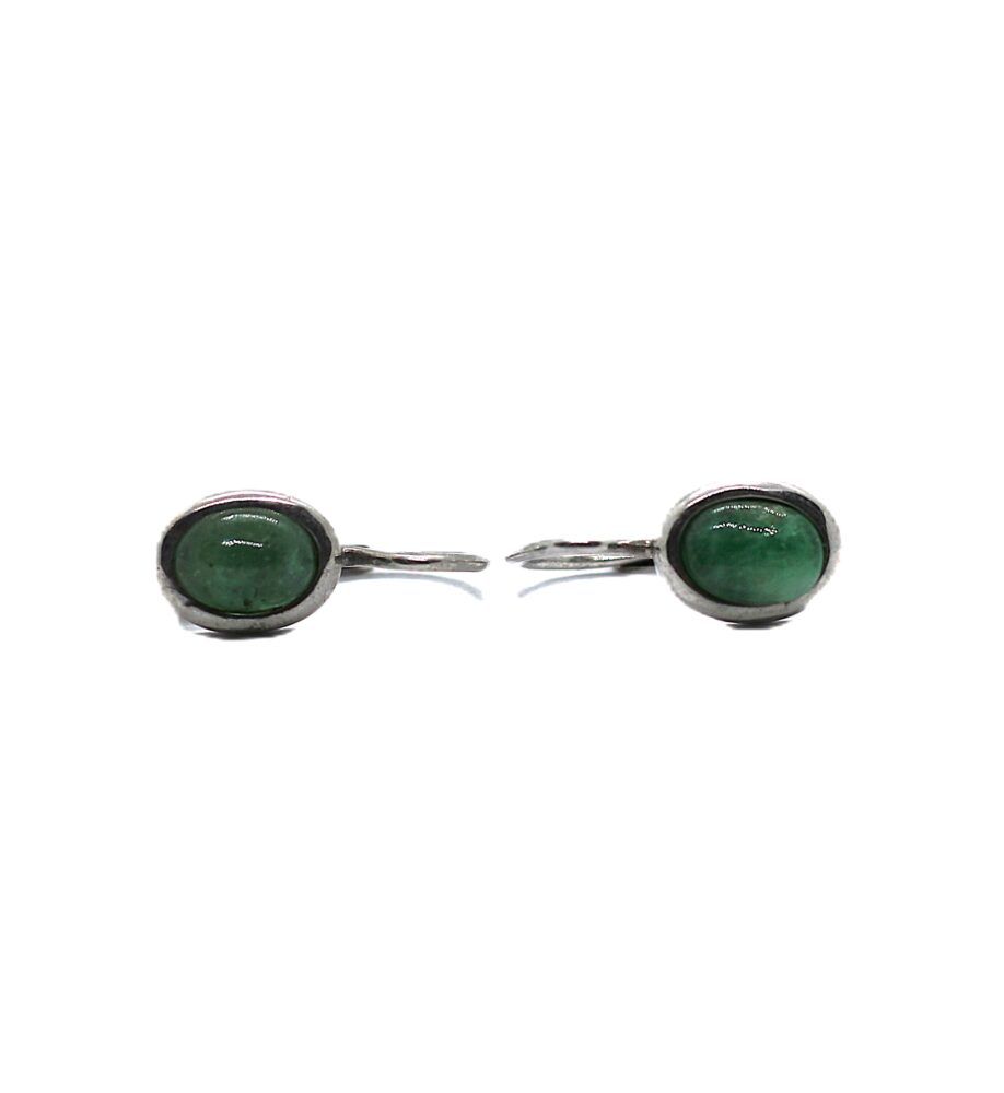Stříbrné náušnice se smaragdy, ryzost stříbra 925/1000, váha 2,49 g, velikost náušnice je 1,5 cm, klasický uzávěr.