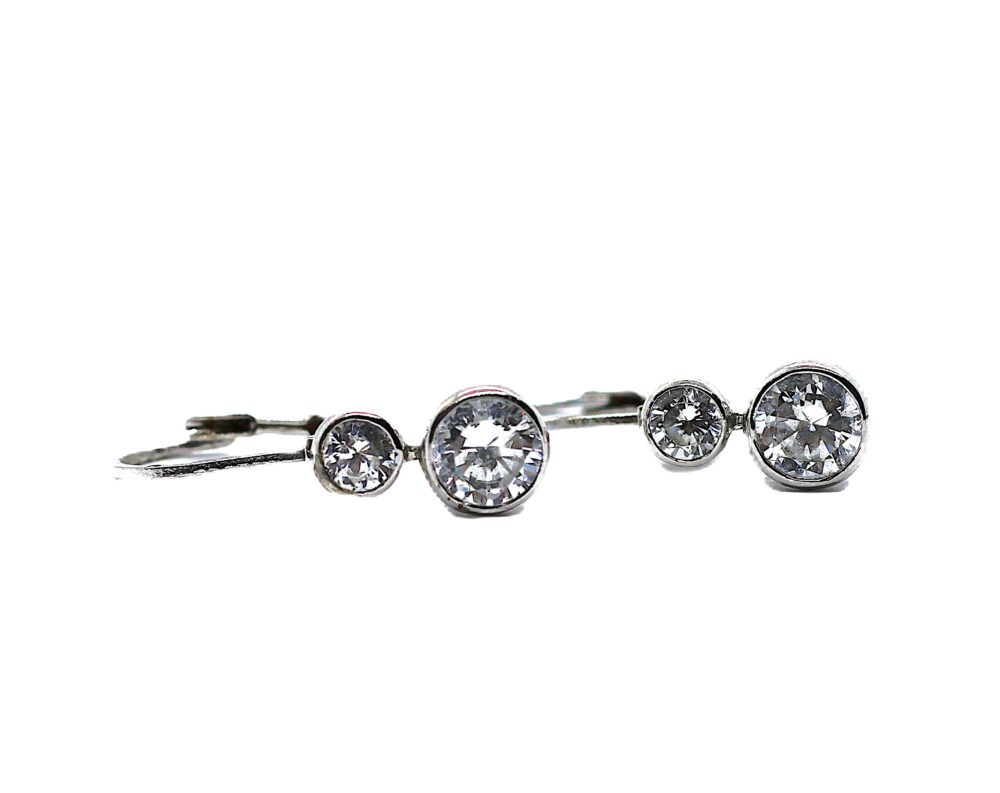 Stříbrné náušnice se zirkony, ryzost stříbra 925/1000, váha 2,71 g, velikost náušnic je 2,5 cm.