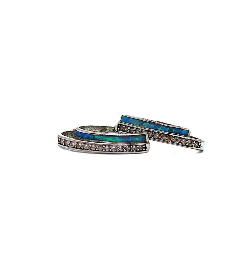 Stříbrné náušnice s opálem a zirkony, stříbro ryzosti 925/1000, váha 4,28g. Velikost náušnice 2,1cm.