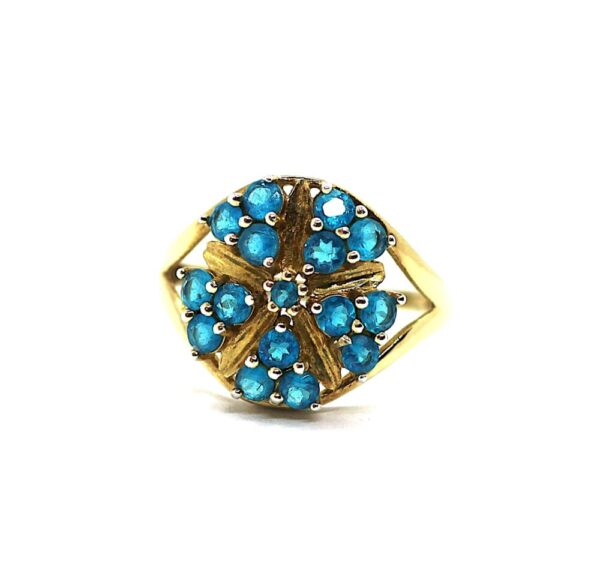 Stříbrný prsten s modrými kameny, pozlacený