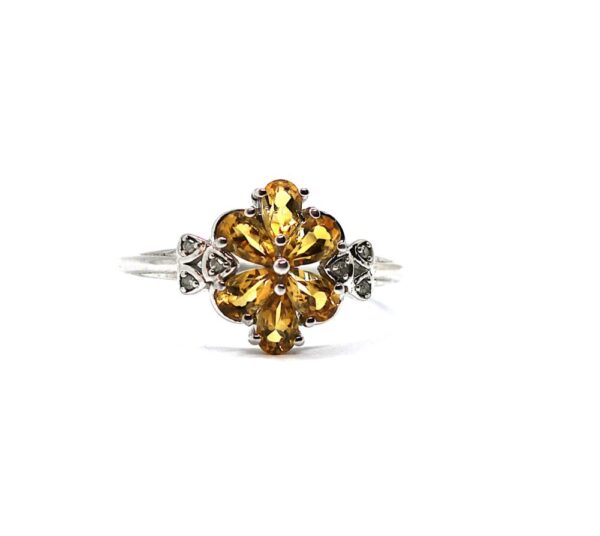 Stříbrný prsten se žlutými kameny a zirkony
