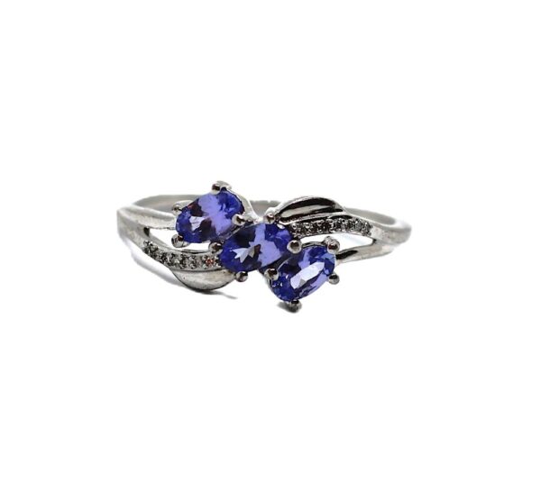 Stříbrný prsten s fialovými kameny a diamanty