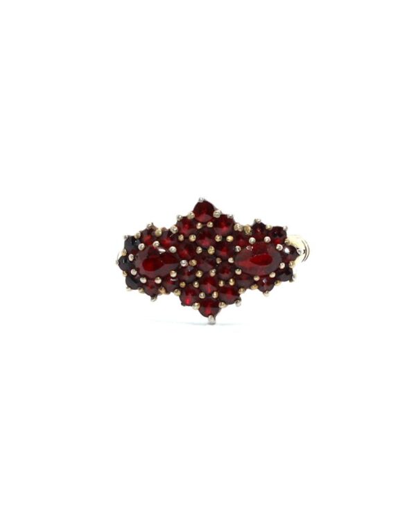 Stříbrný, zlacený prsten s českým granátem a almandinem