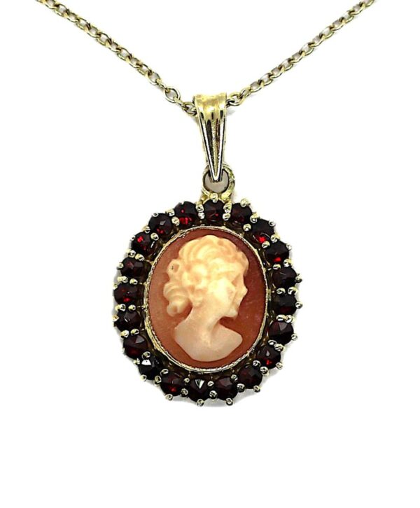 Zlatý přívěs, české granáty, kamej, náhrdelník