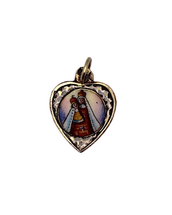 Stříbrný přívěs – srdce, smalt, Madonka s dítětem