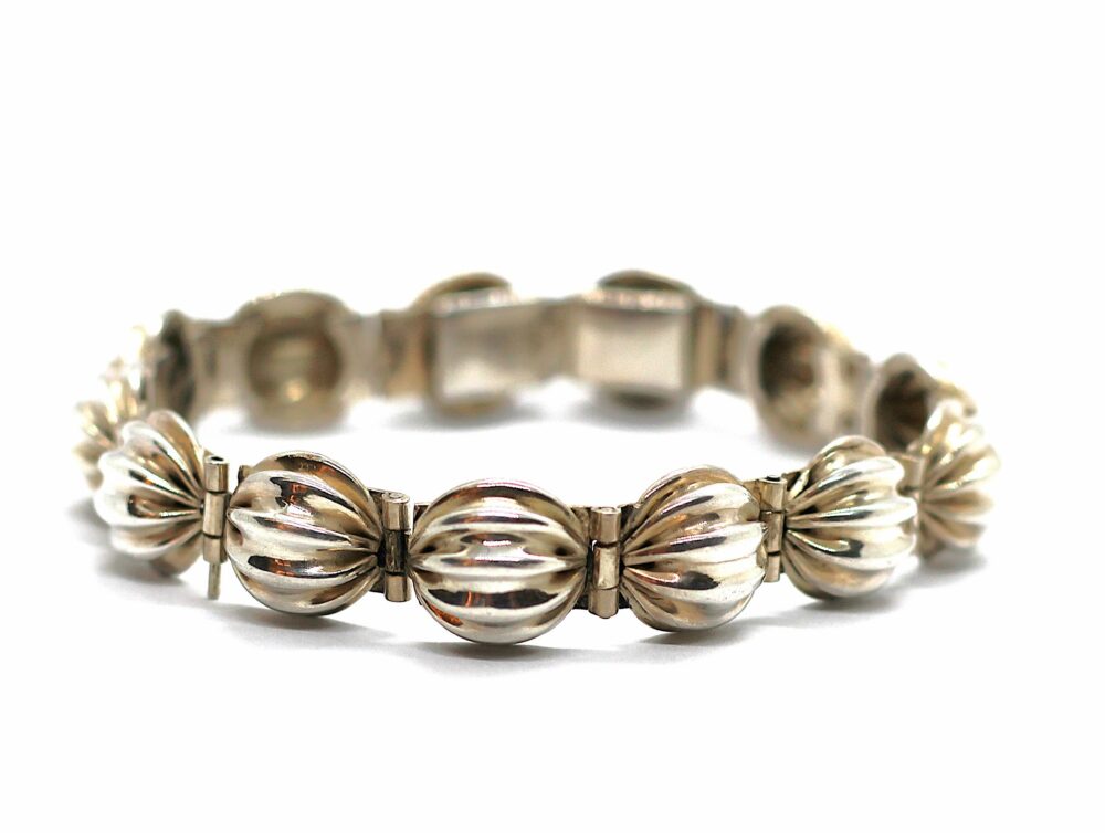 Stříbrný Art Deco náramek, stříbro ryzosti 900/1000, váha 19,71g. Šířka náramku 1,2cm, délka náramku 18cm.