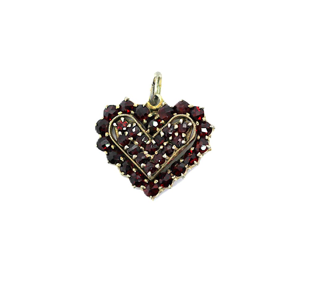 Stříbrný přívěs s českými granáty, srdce