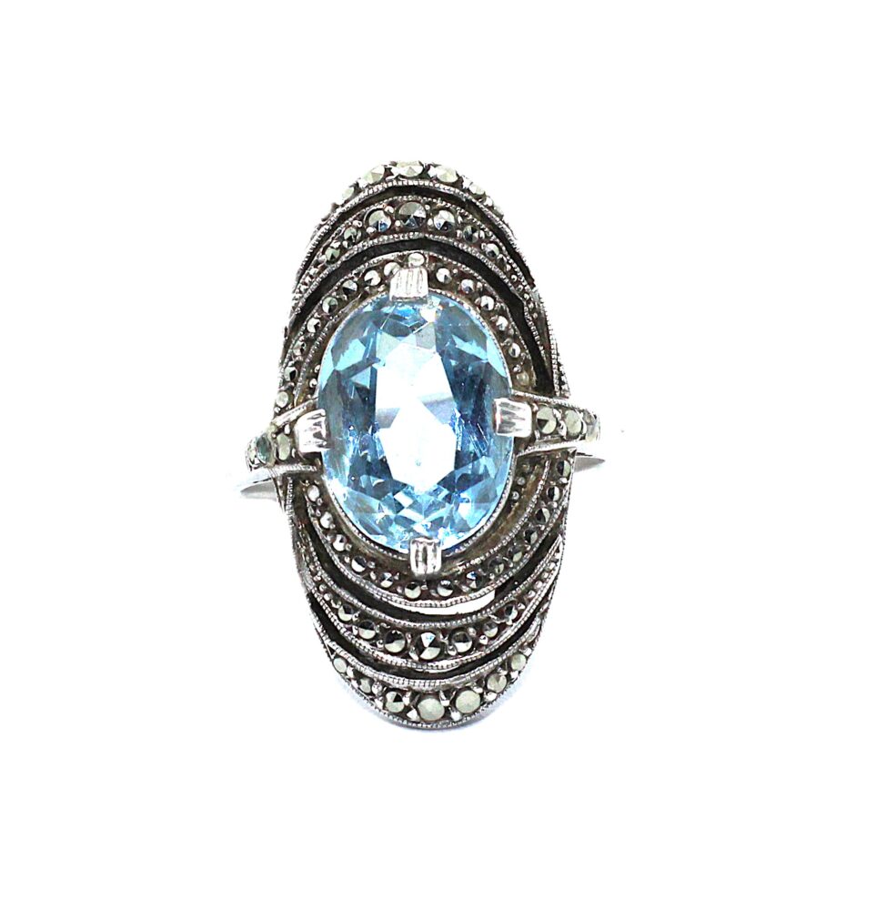 Stříbrný prsten s akvamarínem a markazity, 1. republika