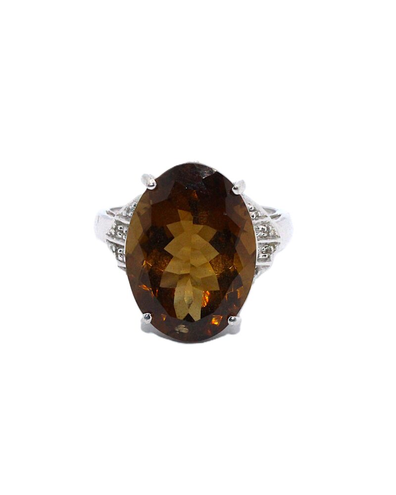 Stříbrný prsten se záhnědou a zirkony, ryzost stříbra 925/1000, váha 4,91 g, velikost prstenu je 54, velikost hlavy prstenu je 1,8 cm.
