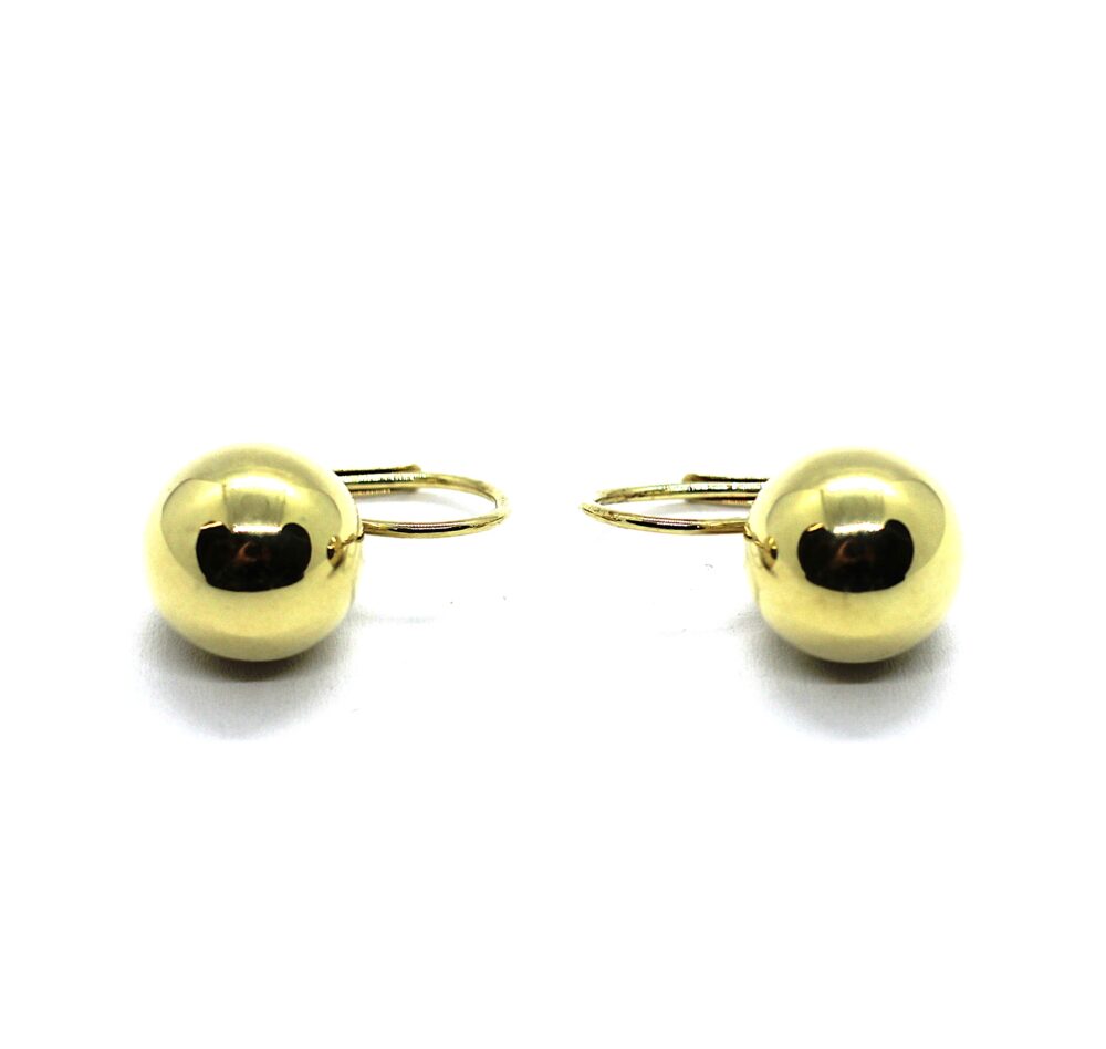 Zlaté náušnice – kuličky, ryzost zlata 585/1000, váha 3,94 g, velikost náušnice je 2 cm.