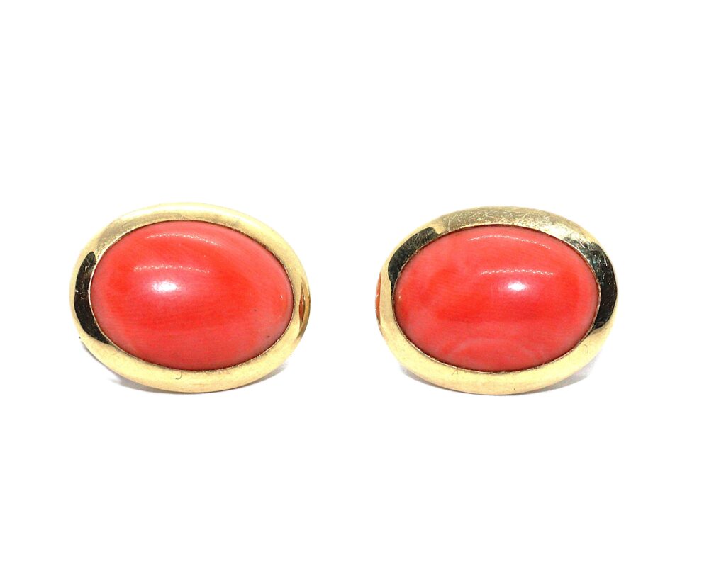 Zlaté náušnice s korálem, ryzost zlata 585/1000, váha 13,95 g, zapínání na klips s tyčinkou, velikost náušnice je 2,1 cm.