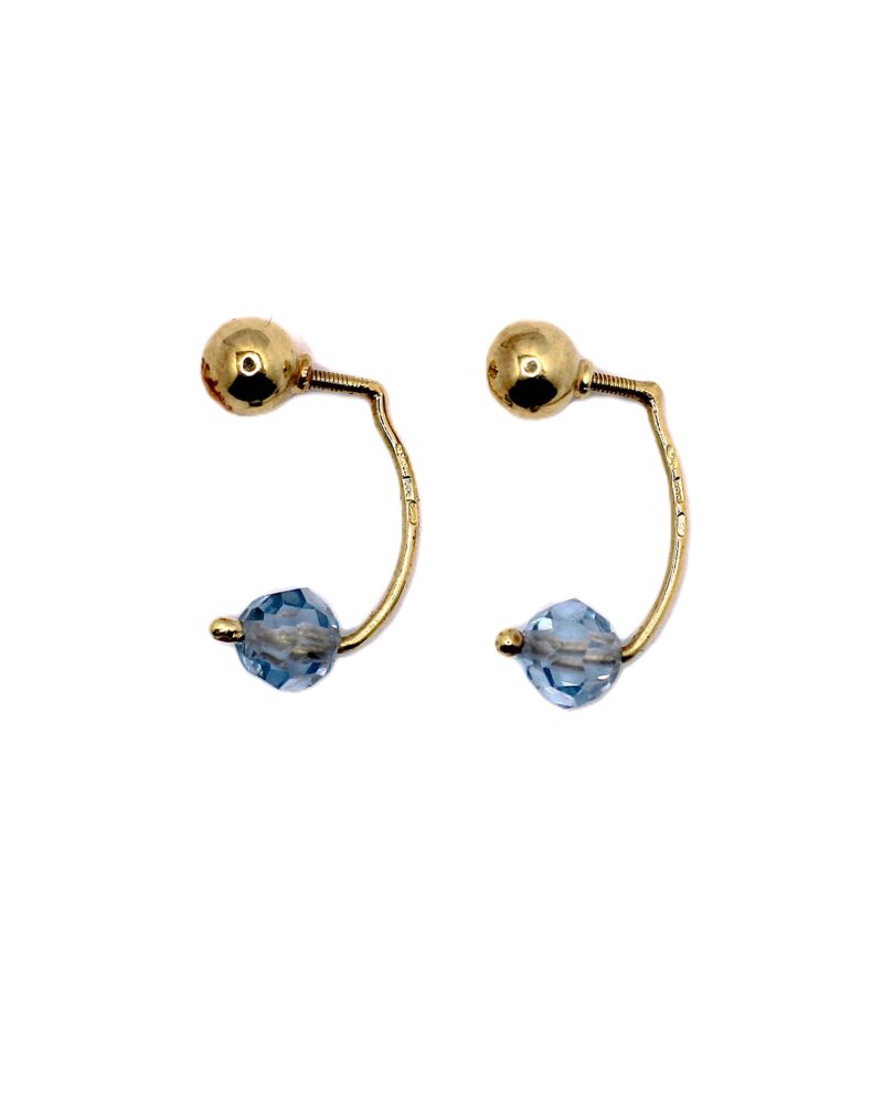 Zlaté náušnice s kuličkou, ryzost zlata 585/1000, váha 1,59 g, velikost náušnice je 2 cm, průměr kuličky je 0,5 cm.