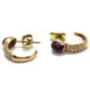 Zlaté náušnice s rubíny broušenými do kabošonu, brilianty 20 x 0,005 ct, ryzost zlata 585/1000, váha 2,62 g, velikost náušnic je 1,5 cm.