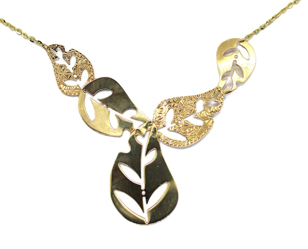 Zlatý náhrdelník – listy, ryzost zlata 585/1000, váha 5,31 g, délka náhrdelníku je cca 45 cm.