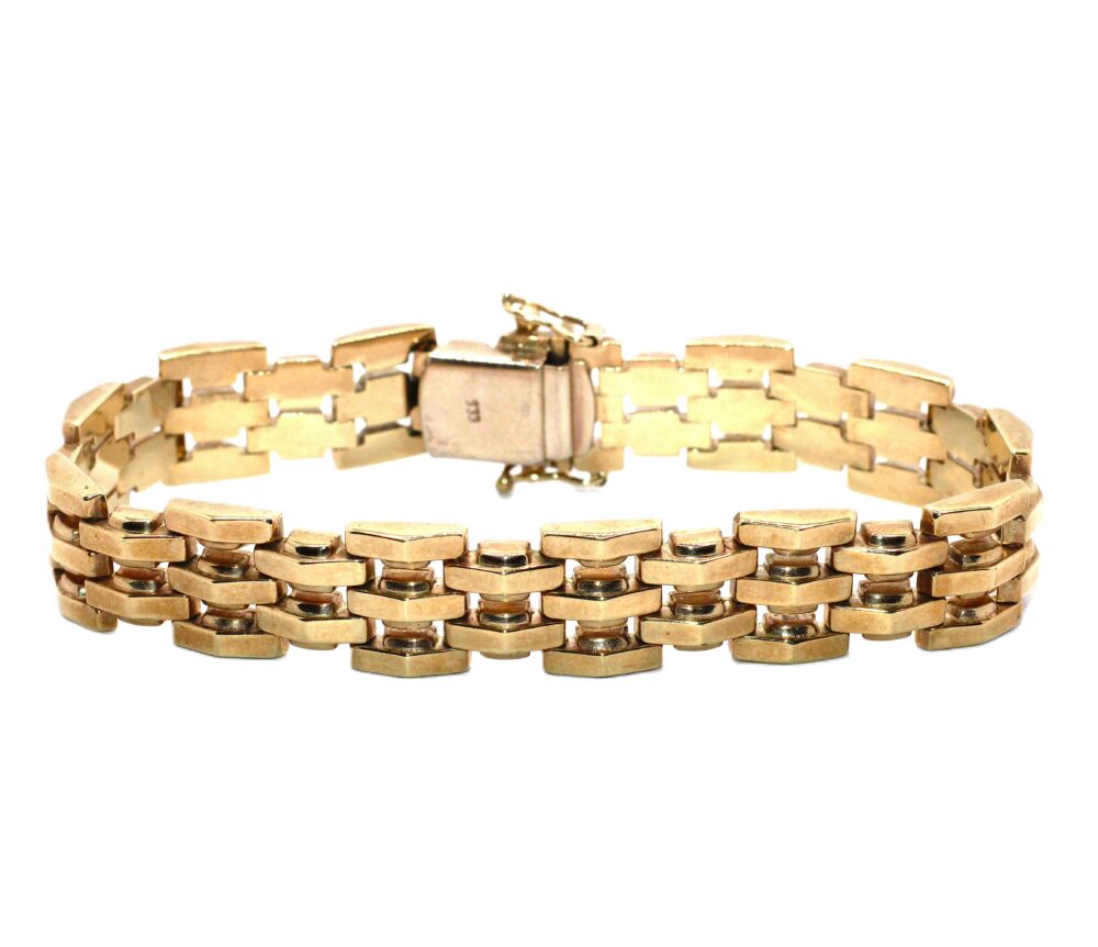 Zlatý náramek, ryzost zlata 333/1000, váha 20,55 g, délka náramku je 19 cm, šířka náramku je 1,2 cm.