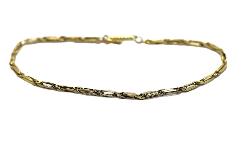Zlatý náramek, ryzost zlata 585/1000, váha 1,76 g, délka náramku je 19 cm, šíře 0,2 cm.