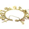 Luxusní, zlatý žužu náramek s přívěsky, 1. republika. Velké množství originálních přívěsů. Zlato ryzosti 585/1000, váha 17,16g. Délka náramku 18cm. Pojistkový řetízek.