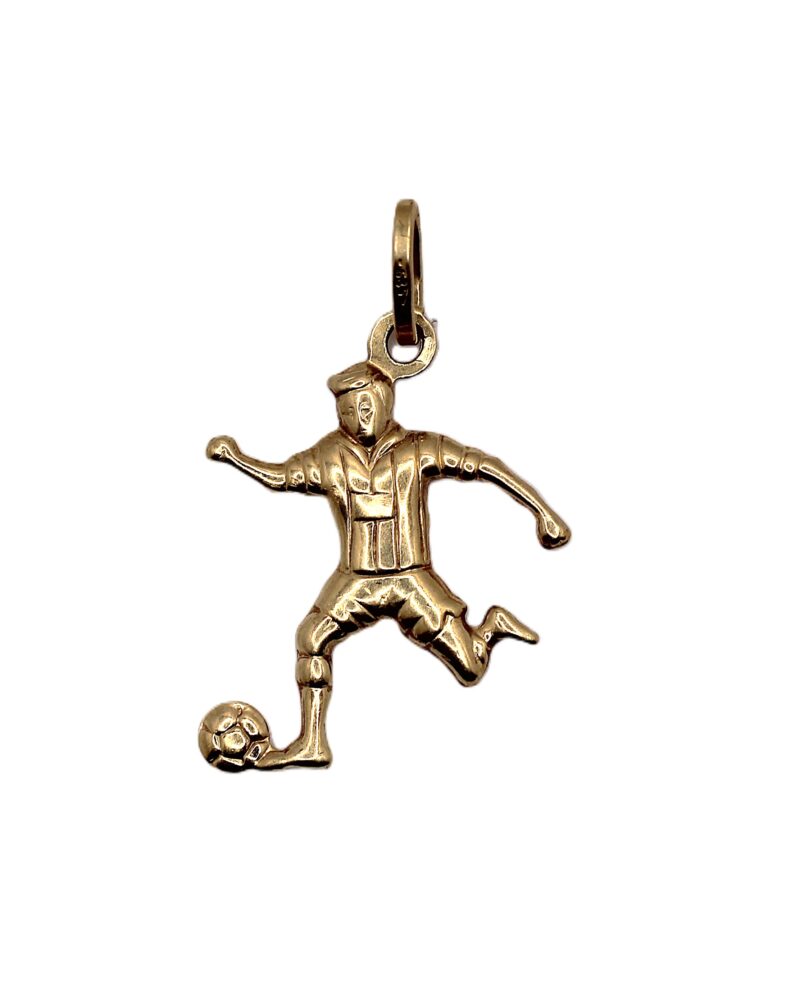 Zlatý přívěs – fotbalista, ryzost zlata 585/1000, váha 1,31 g, velikost přívěsu i s ouškem je 3 cm.