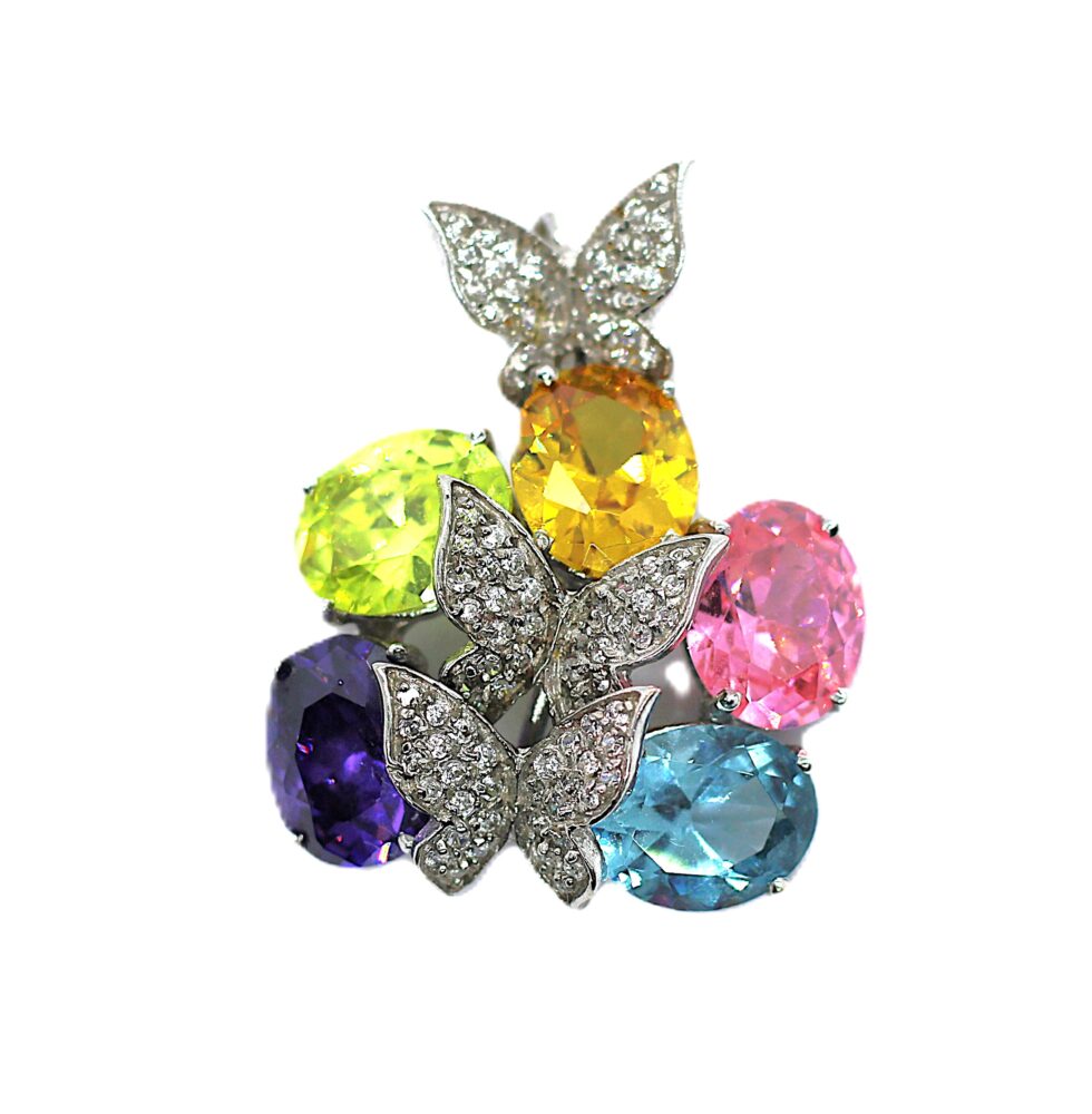 Zlatý přívěs s barevnými kameny a zirkony, bílé zlato o ryzosti 585/1000, váha 9,73 g, velikost přívěsu je 3,5 cm.