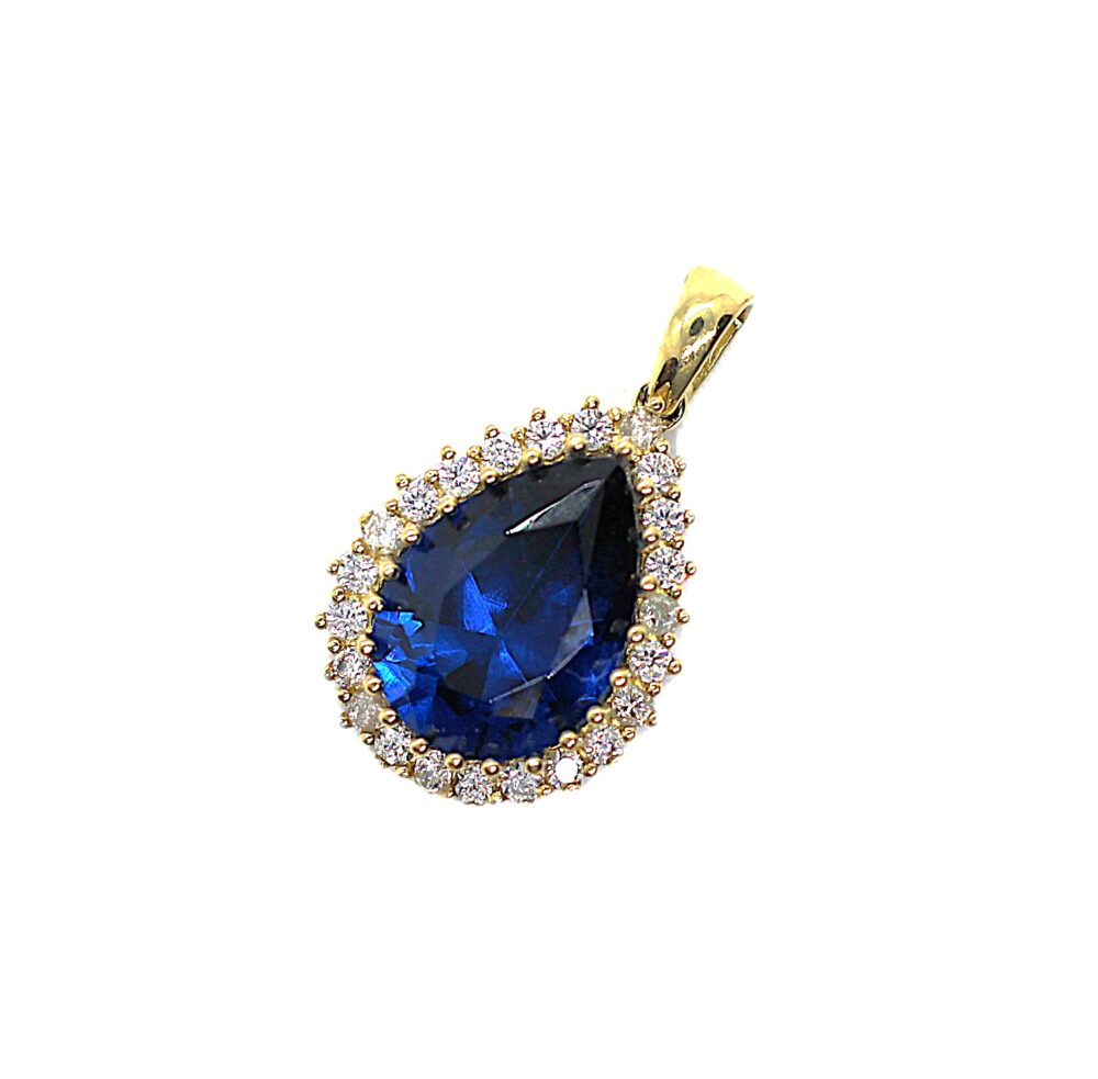 Zlatý přívěs se safírem a zirkony