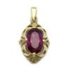 Zlatý přívěs se spinelem, ryzost zlata 585/1000, váha 5,84 g, velikost přívěsu i s ouškem je 3,5 cm.