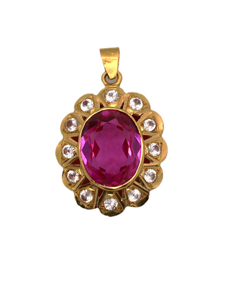 Zlatý přívěs se syntetickým rubínem a zirkony
