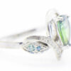 Zlatý prsten s brilianty, 585/1000, 14x 0,005 ct + modré brilianty 2x 0,02 ct, 2x 0,01 ct, centrální kámen barvený zirkon, váha 4,06 g, velikost prstenu 54.