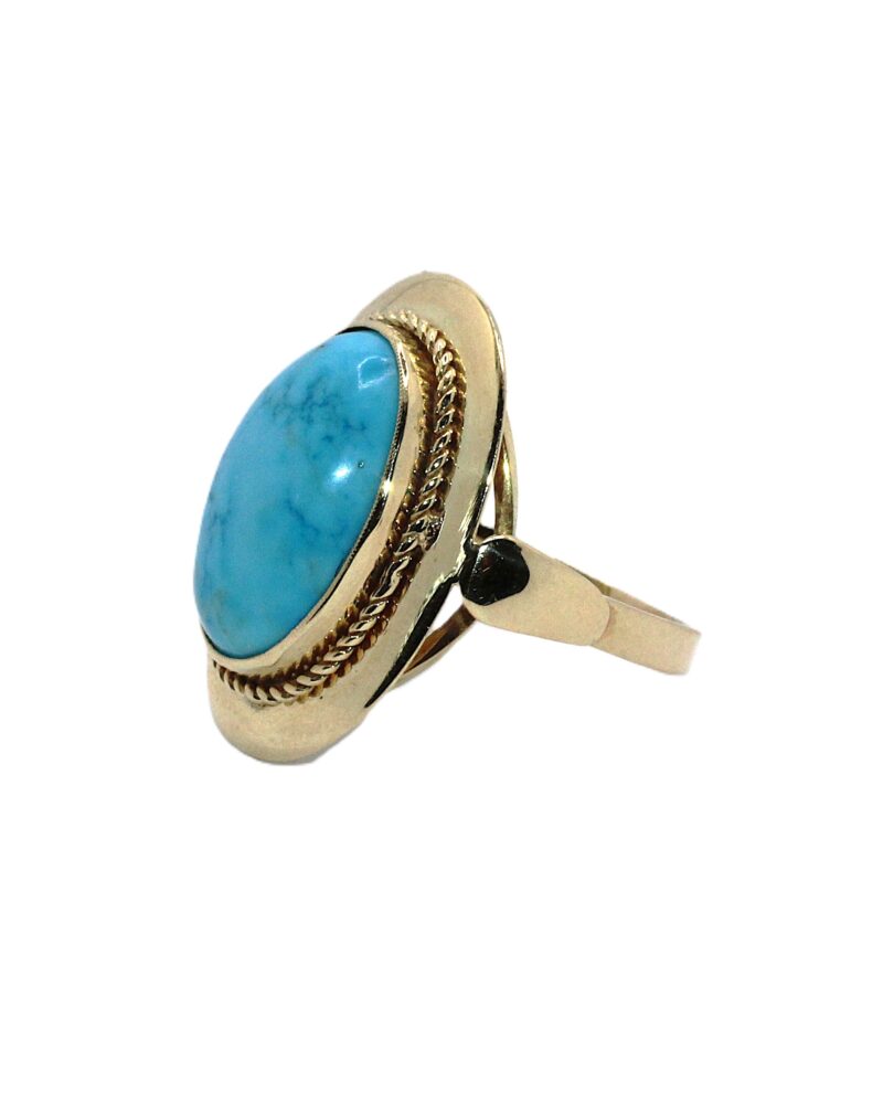 Zlatý prsten s tyrkysem, ryzost zlata 585/1000, váha 5,51 g , velikost prstenu je 52, velikost hlavy prstenu je 2,2 cm.