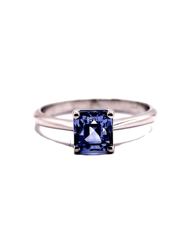 Zlatý prsten se safírem, bílé zlato o ryzosti 585/1000, váha 2,78 g, prsten má certifikát o pravosti kamene, velikost prstenu je 55.