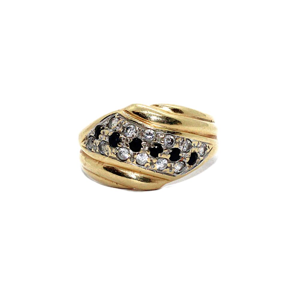 Zlatý prsten se zirkony a safíry